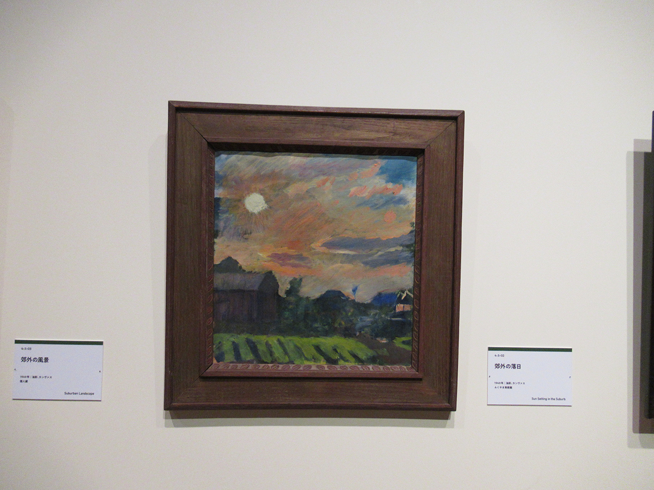 展覧会の最後の一角は、晩年を過ごした東京都豊島区の自宅から眺めた風景が並ぶ。田園に夕陽が落ちる情景は、のどかで小林ならではの色彩に富んだ温かみがあるが、これらを描いた1949年に心臓麻痺で急死。死期を感じ取っていたかのような静けさがある。