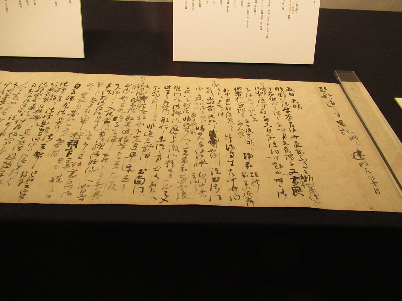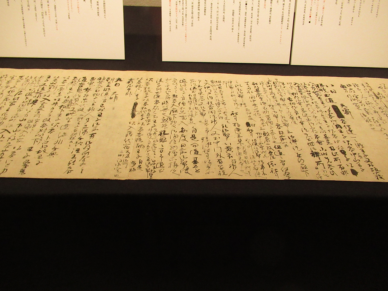 参詣道中の社寺や宿の地名、天候や景色などが詳細に書かれていて史的価値が高いうえに、「定家40歳の書風を知る基準」で美術的な価値も高いと本展担当の清水実同館学芸部長。「定家は持病があり体が弱かったので、当初から体調を崩し、疲れて寝たなどということも書かれている。現地で書いているのであちらこちらに書き直しや体調の悪化による筆の乱れなどがあり、道中での臨場感が伝わる」と、この書の魅力を話した。