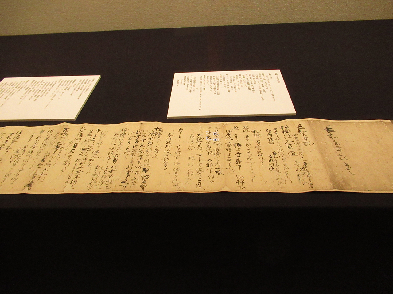 息子の為家に宛てたとされる初公開の消息2通も「定家の特徴がよく表れた面白い書だ」と清水学芸部長。「くずし字をつないだ連綿の書は少なく、一文字ずつツブツブと書く」定家の書は、「日記などの記録をとにかくたくさん写しているので、一文字ずつ書くことが身についている。本人は悪筆だと言っているが、自分なりの略字で素早く書くことに慣れている」ことで味わいを醸し出している。